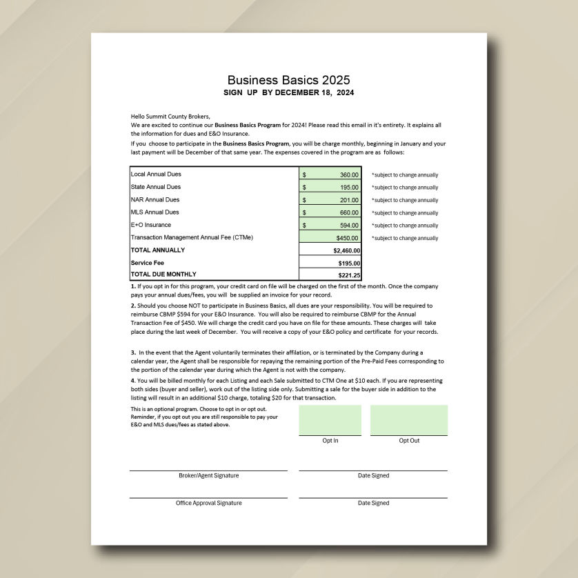 If you choose to participate in the Business Basics Program, you will be charge monthly, beginning in January and your last payment will be December of that same year. (Please Note NOT to use these forms after January 2025)