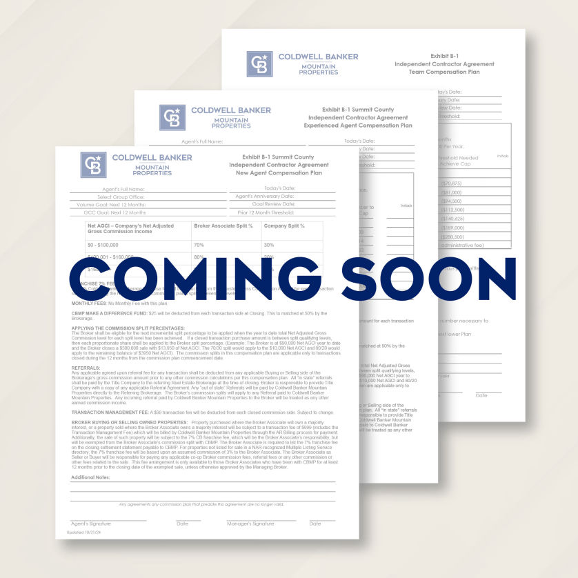 Commission/Compensation Plans for New, Experienced Agents and Teams.